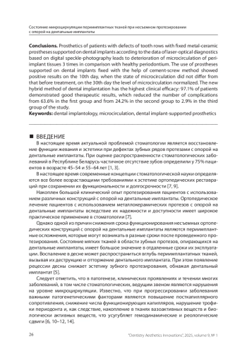 Статья: Состояние микроциркуляции периимплантных тканей при несъемном протезировании с опорой на дентальные имплантаты (2025)