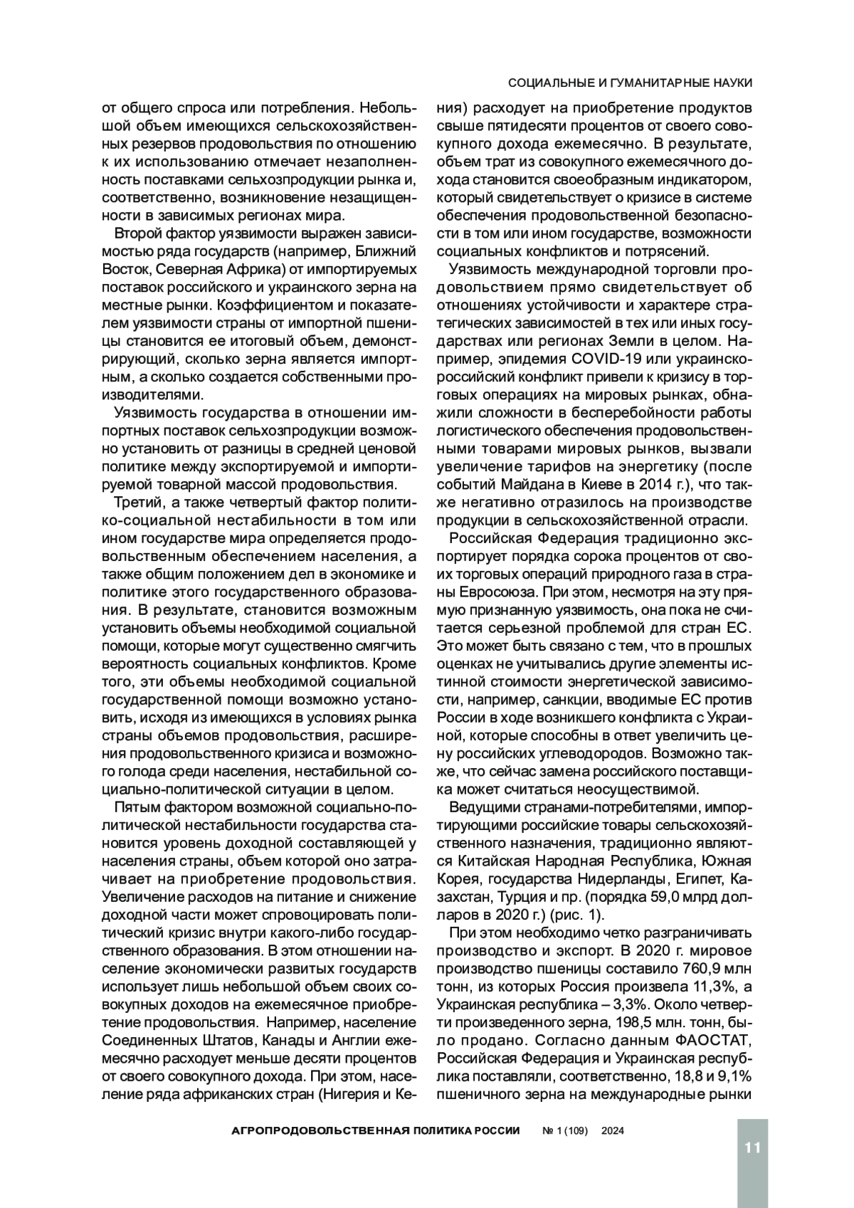 Работа посвящена формированию интегрального показателя стратегий. Целью предложенной работы является экономическое исследование поставок продовольственных товаров России и Украины в 2020-2023 гг. Задачами статьи явился анализ международного экспорта украинских и российских зерновых культур в регионы Ближнего Востока и Северной Африки. Теоретико-методологической основой стали анализ и синтез данных экспортных поставок российской и украинской сельскохозяйственной продукции. Определен уровень угрозы для продовольственной безопасности государств, входящих в эти регионы, нарушения мировой стабильности и возможных социальных потрясений. В работе анализируются вопросы логистических поставок, международное сотрудничество России, Украины и стран Ближнего Востока и Северной Африки в области экспорта товаров сельскохозяйственного и продовольственного назначения с целью поддержания стабильной социально-экономической ситуации, связанной с мировой продовольственной безопасностью. пределены направления для стран Ближнего Востока и Северной Африки, имеющих уязвимости в отношении поставок продовольствия, выполнение которых позволит повысить их продовольственную защищенность, а также социальную стабильность в этих регионах и в мире в целом. В ходе исследования определена роль России и Украины как ведущих экспортеров на мировых рынках зерна. В статье на примере возможного набора показателей определена способность справляться с возникающими продовольственными трудностями и противостоять этим потрясениям. Полученные в результате исследования выводы предлагают улучшенный подход к устранению продовольственных зависимостей и связанных с ними угроз для продовольственной безопасности, а также меры, которые обеспечат доступ к дефицитным запасам продовольствия для повышения социально-политической устойчивости отдельных стран мира. В статье отмечается, что сохранение курса антироссийских санкций со стороны Запада в отношении российской экономики может инициировать продовольственный кризис из-за отсутствия должного объема экспортных поставок пшеницы, что приведет к возможной массовой миграции населения Ближнего Востока и Северной Африки из-за нехватки продовольствия в Европу, аналогично событиям осени 2015 г., что спровоцирует межнациональные конфликты и жертвы среди населения.