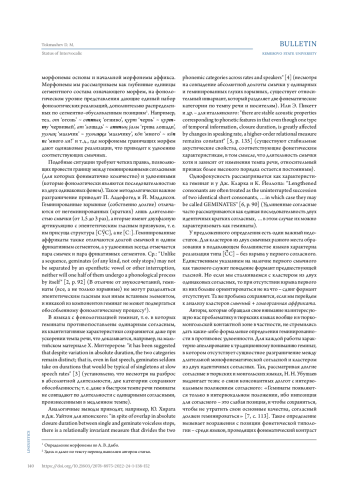 3. Mitterer H. The singleton-geminate distinction can be rate dependent: Evidence from Maltese. Laboratory Phonology: Journal of the Association for Laboratory Phonology, 2018, 9(1). DOI: 10.5334/labphon.66 4. Hirata Yu., Whiton J. Effects of speaking rate on the single / geminate stop distinction in Japanese. The Journal of the Acoustical Society of America, 2005, 118(3). DOI: 10.1121/1.2000807