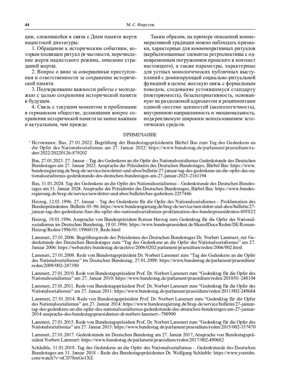 33. Leichsenring J. Aktueller Begriff. 27. Januar - Tag des Gedenkens an die Opfer des Nationalsozialismus [Электронный ресурс]. Режим доступа: https://www.bundestag.de/resource/blob/589228/9d688645b4ef3201515bb480733086e9/kw05_nachbericht_gedenkstunde_aktueller_begriff.pdf (дата обращения 15.06.2024).