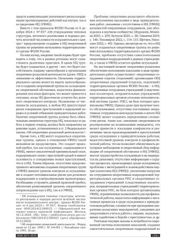 6. Тихомиров 2022 - Тихомиров А. И. Некоторые вопросы совершенствования нормативно-правового регулирования осуществления оперативно-розыскной деятельности в исправительных центрах // Профессиональное юридическое образование и наука. 2022. № 3(7). С. 112-116. EDN: JHWOCL