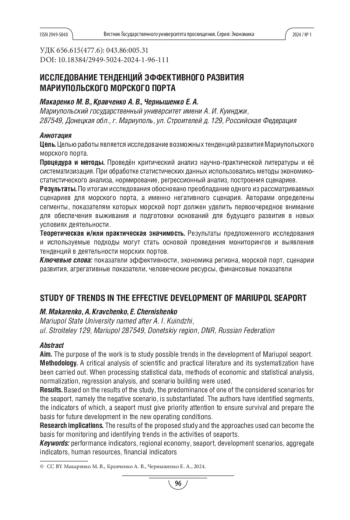 Цель. Целью работы является исследование возможных тенденций развития Мариупольского морского порта.