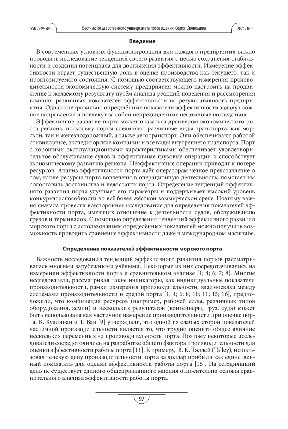 5. Bichou K. Review of port performance approaches and a supply chain framework to port performance benchmarking // Research in Transportation Economics. 2006. Vol. 17. Р. 567- 598.
