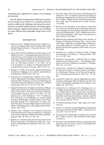 7. Быкова А. В. Трансформация энергетического сектора Российской Федерации в эпоху цифровой экономики / А. В. Быкова // Экономика устойчивого развития. – 2021. – № 3(47). – С. 49-53.