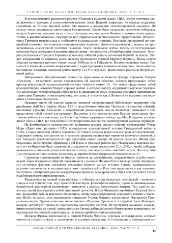 В статье проводится анализ романа американского фантаста Филипа Киндреда Дика «Человек в высоком замке» (1962) сквозь призму политической и метафизической проблематики. Несмотря на то, что творческое наследие Дика привлекает пристальное внимание литературных критиков и широкого круга читателей, оно остается сравнительно мало изученным, что свидетельствует об актуальности настоящего исследования. В романе «Человек в высоком замке» Дик создает альтернативную реальность, в которой нацистская Германия и Япония одержали победу во Второй мировой войне. Писатель не ограничивается реконструкцией политической истории и задает философские вопросы о сущности реальности, судьбе и человеческой свободе. Цель исследования заключается в анализе функционирования политического и метафизического компонента в поэтике романа Ф. Дика «Человек в высоком замке», для чего автором статьи были применены историко-литературный и структурный методы, позволившие провести анализ поэтики романа в свете выбранной проблематики. Автор публикации приходит к выводу, что концентрация писателя на исследовании совокупности политических и философских проблем приводит к многочисленным критическим сравнениям с идеями выдающихся мыслителей; политика пронизывает жизни персонажей Ф. Дика, которые, сталкиваясь с давлением тоталитарных режимов, вынуждены принимать происходящие ужасы как неизбежность; политическая реальность проникает в самую ткань повседневности, влияя на моральные и экзистенциальные решения героев романа. Взаимодействие между политическими и метафизическими темами раскрывается через характерные для творчества Дика философские мотивы, такие как идеи неоплатоников, гностиков и экзистенциалистов. Роман «Человек в высоком замке» является примером произведения, в котором политические и философские идеи органично переплетаются, формируя поэтику романа.