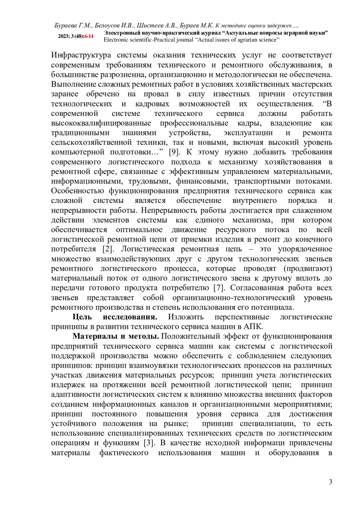 9. Шистеев, А.В. К методике оценки надежности логистических систем на предприятиях технического сервиса / М.К. Бураев, А.В. Шистеев, Г.М. Бураева // Вестник ВСГУТУ. – 2021. – № 4 (83). – С. 46-53.