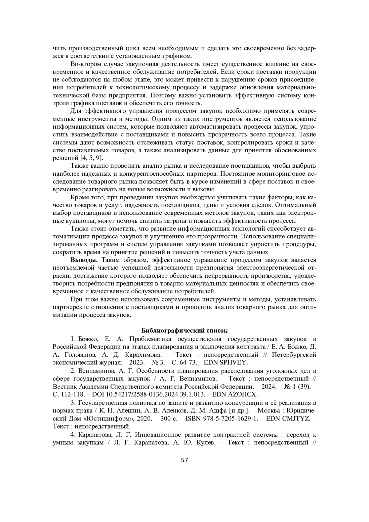 1. Божко, Е. А. Проблематика осуществления государственных закупок в Российской Федерации на этапах планирования и заключения контракта / Е. А. Божко, Д. А. Голованов, А. Д. Карахимова. - Текст: непосредственный // Петербургский экономический журнал. - 2023. - № 3. - С. 64-73. EDN: SPHVEY