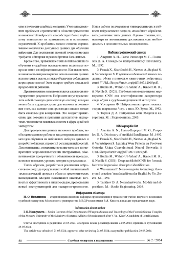 3. Budka M., Wahid-Ul-Ashraf A., Bennett M. R., & Neville S. (2021). Глубокая многоуровневая маркировка CNN для идентификации дескриптора следа обуви в судебно-медицинской экспертизе.