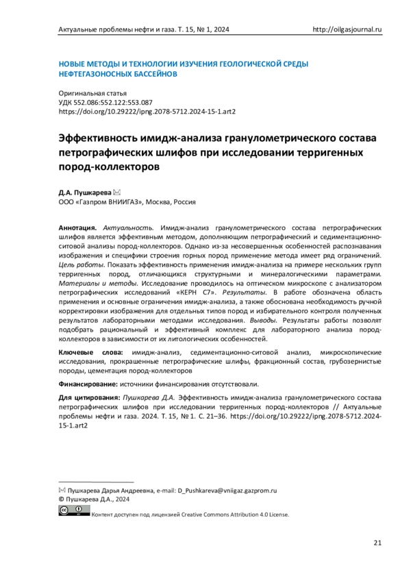 3. Асташкин Д.А. Особенности определения гранулометрического состава пород различными методами // Геология, геофизика и разработка нефтяных и газовых месторождений. 2010. № 5. С. 78–82.