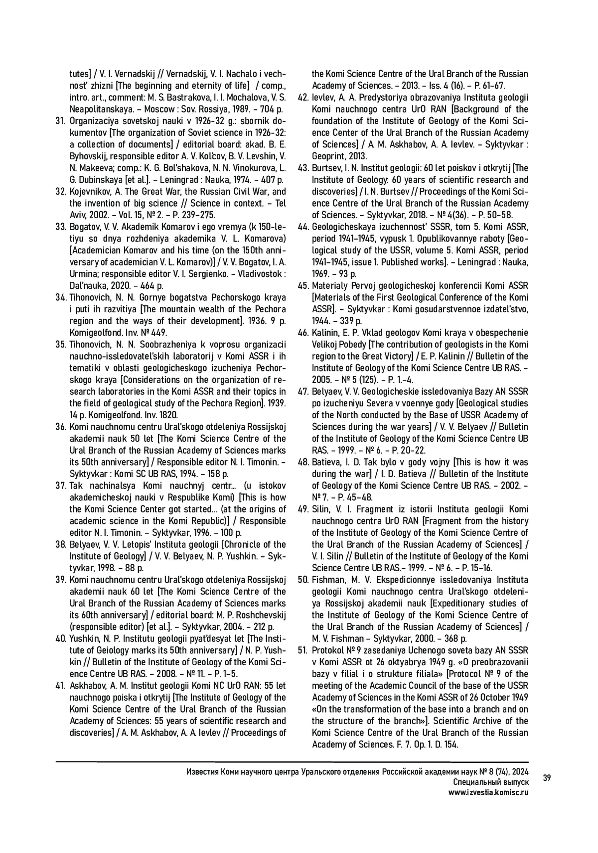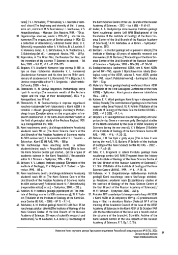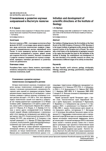 43. Бурцев, И. Н. Институт геологии: 60 лет поисков и открытий / И. Н. Бурцев // Известия Коми НЦ УрО РАН. - Сыктывкар, 2018. - № 4(36). - С. 50-58. EDN: VRDJNV