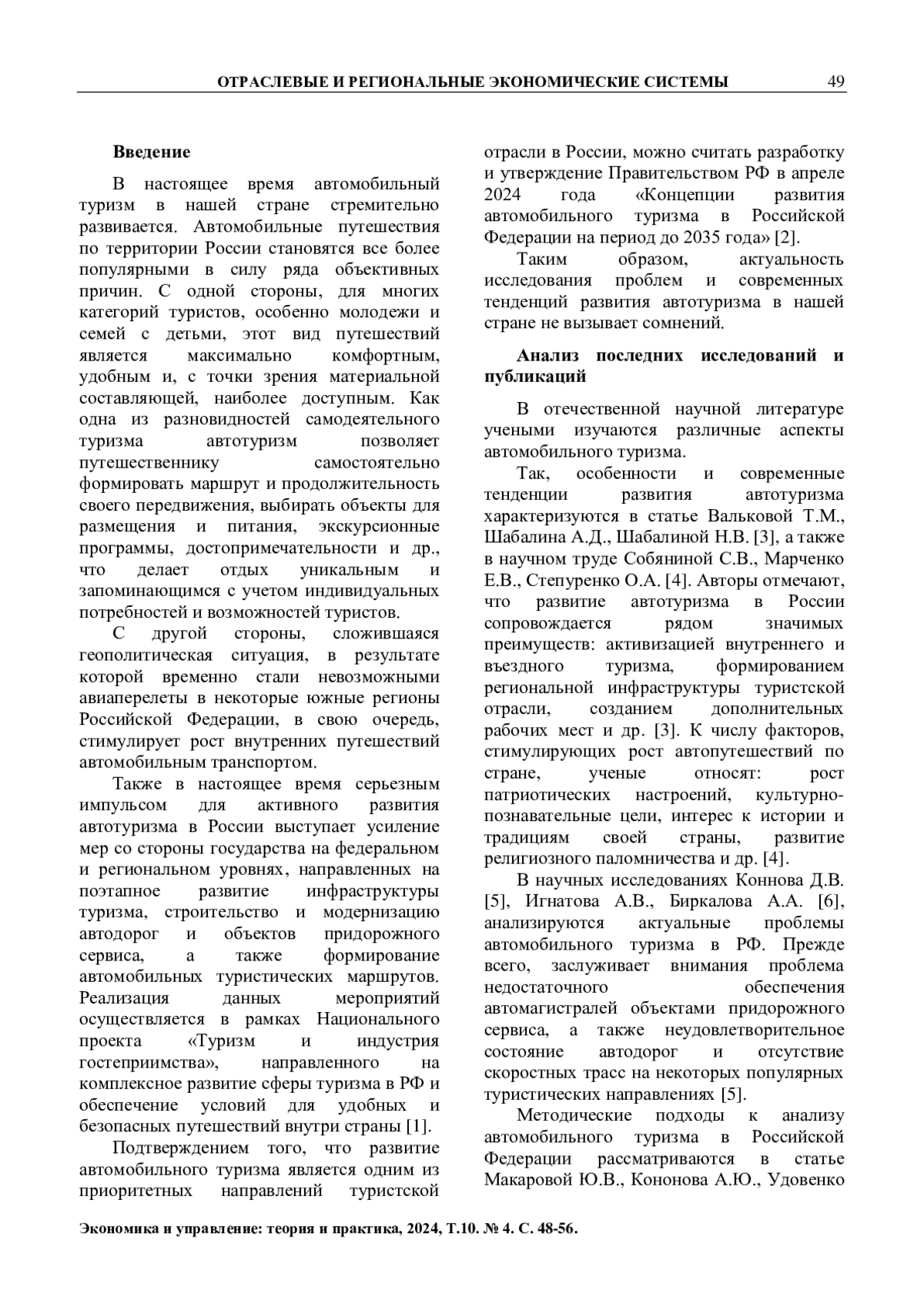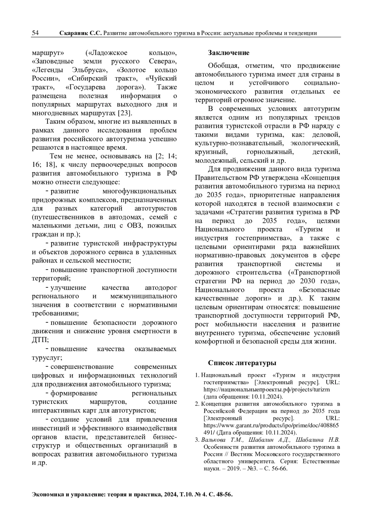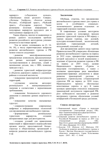 8. Гомилевская Г.А., Швабский Д.М. Научно-эмпирические аспекты развития автотуризма в контексте международной и отечественной практики // Фундаментальные исследования. - 2024. - №7. - С. 75-82. EDN: EOSHYS