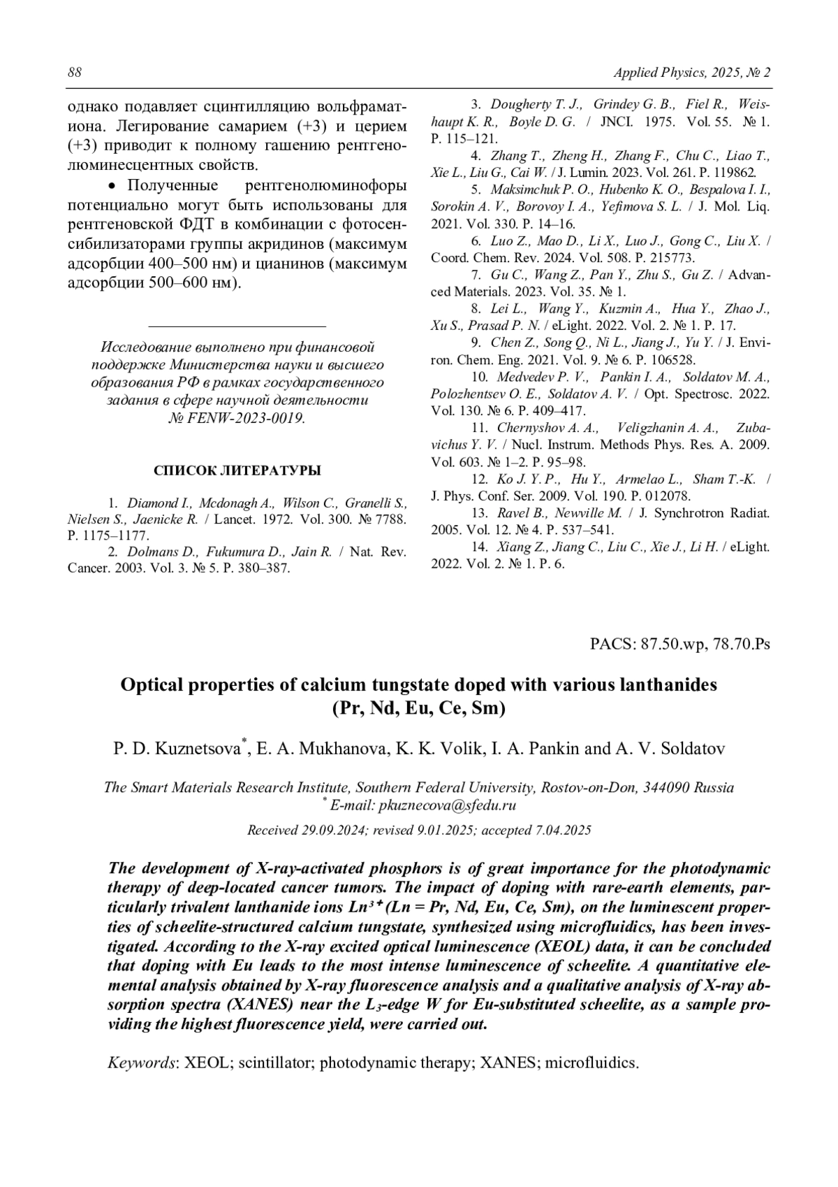 - Medvedev P. V., Pankin I. A., Soldatov M. A., Polozhentsev O. E., Soldatov A. V. / Opt. Spectrosc. 2022. Vol. 130. № 6. P. 409–417.