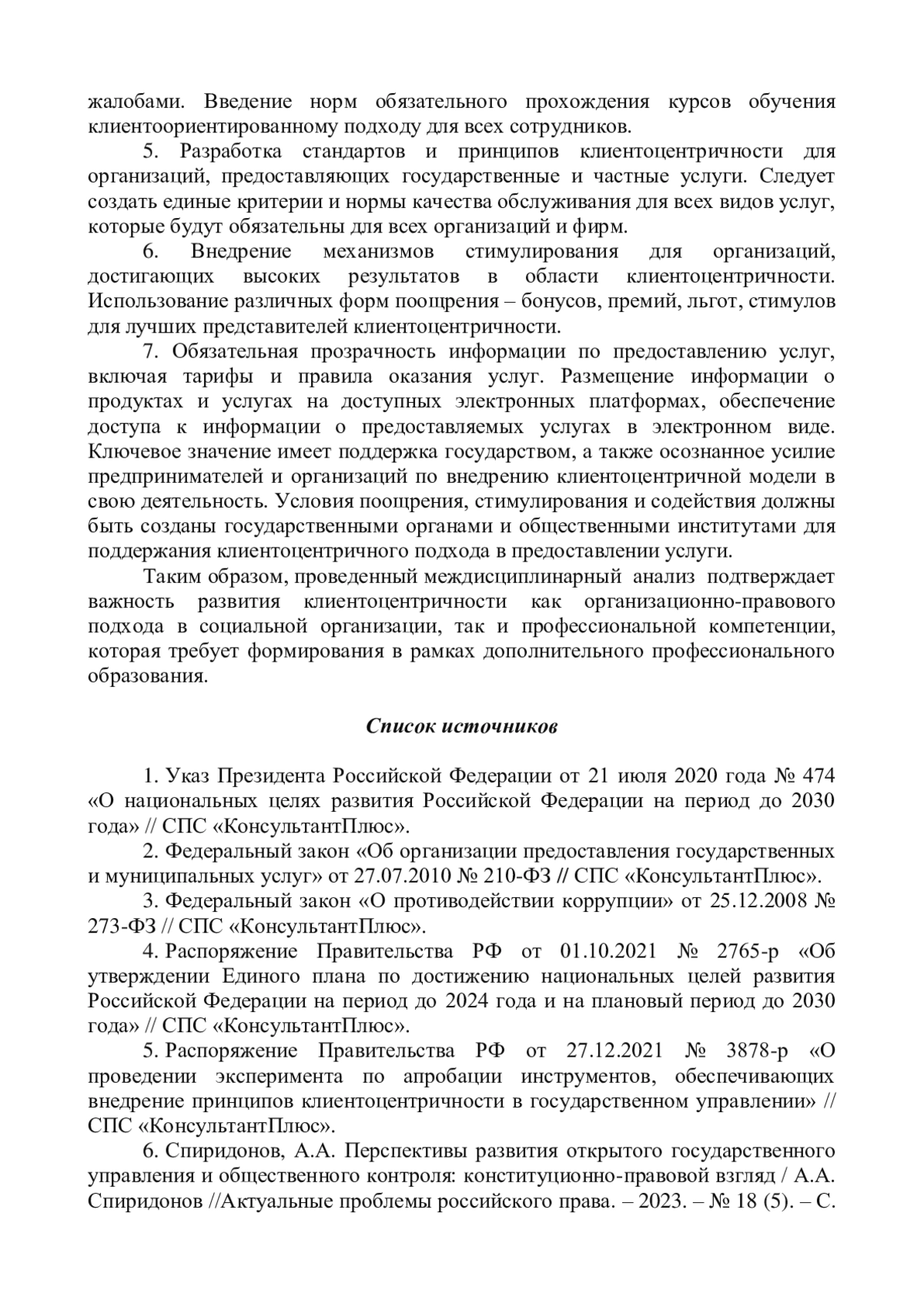 5. Распоряжение Правительства РФ от 27.12.2021 № 3878-р “О проведении эксперимента по апробации инструментов, обеспечивающих внедрение принципов клиентоцентричности в государственном управлении” // СПС “КонсультантПлюс”.