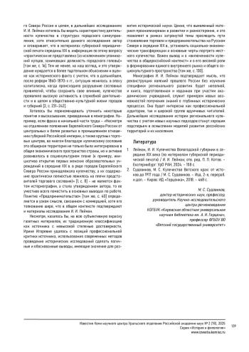 1. Лейман, И. И. Купечество Вологодской губернии в середине XIX века (по материалам губернской периодической печати) / И. И. Лейман; отв. ред. П. П. Котов. - Екатеринбург: УрО РАН, 2024. - 158 с.