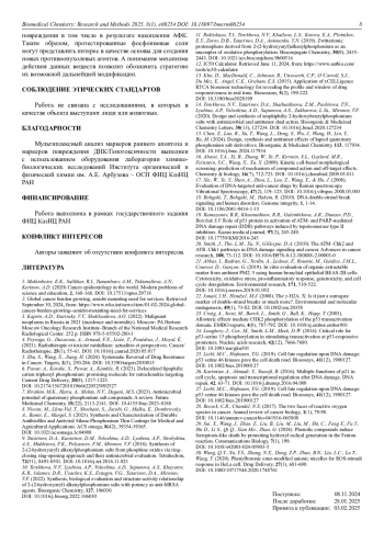 19. Ramazanov, B.R., Khusnutdinov, R.R., Galembikova, A.R., Dunaev, P.D., Boichuk S.V. Role of p53 protein in activation of ATM- and PARP-mediated DNA damage repair (DDR) pathways induced by topoisomerase type II inhibitors. Kazan medical journal, 97(2), 245-249. DOI: 10.17750/KMJ2016-245