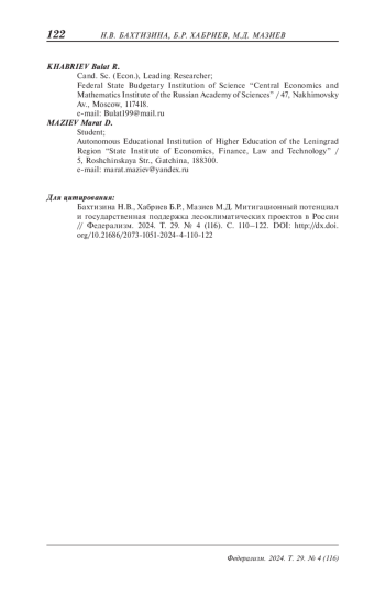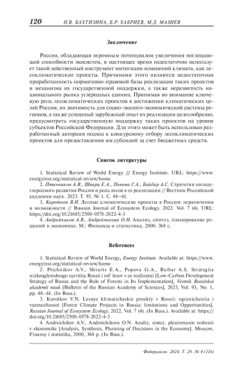 3. Коротков В.Н. Лесные климатические проекты в России: ограничения и возможности // Russian Journal of Ecosystem Ecology. 2022. Vol. 7 (4). URL: https://doi.org/10.21685/2500-0578-2022-4-3