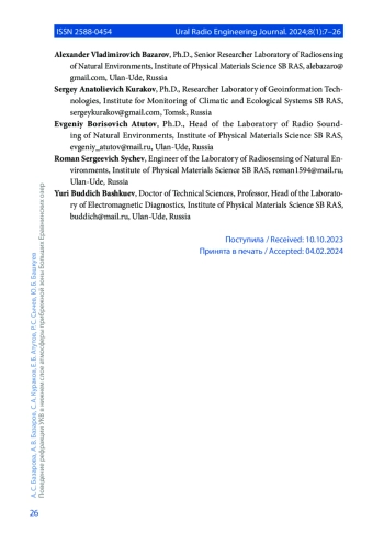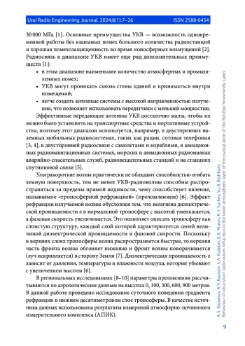 7. Воробьев Н. А. Луферчик П. В., Штро П. В., Богатырев Е. В. Исследование характеристик нестационарности тропосферного канала связи. Ural Radio Engineering Journal. 2023;7(2):123-136. EDN: BDMFOZ
