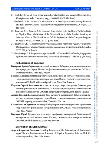 14. Балданова Е. Р. Современная экологическая ситуация Еравно-Харгинского озерного района. В: Новые импульсы развития: вопросы научных исследований. VI Международная научно-практическая конференция. 10 декабря 2020 г., Саратов, Россия. Саратов; 2020. С. 160-163. EDN: GDRMJF