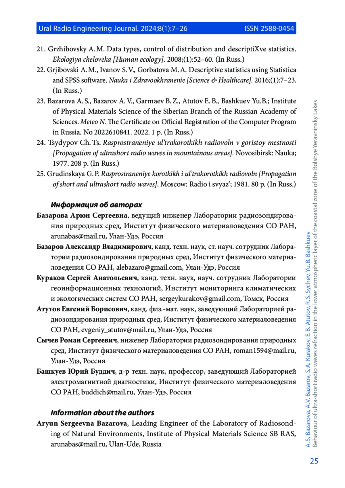 24. Цыдыпов Ч. Ц. Распространение ультракоротких радиоволн в гористой местности. Новосибирск: Наука; 1977. 208 с.