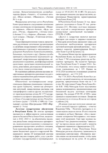 8. Минздрав Коми: в регионе улучшается ситуация с льготным лекарственным обеспечением. - URL: https://komigor.com/news/2024/01/23/minzdrav-komi-v-regione-uluchshaetsya-situaciya-s-lgotnym-lekarstvennym-obespecheniem/(дата обращения: 28.03.2024).