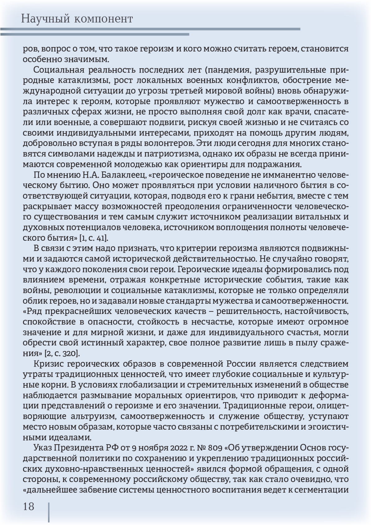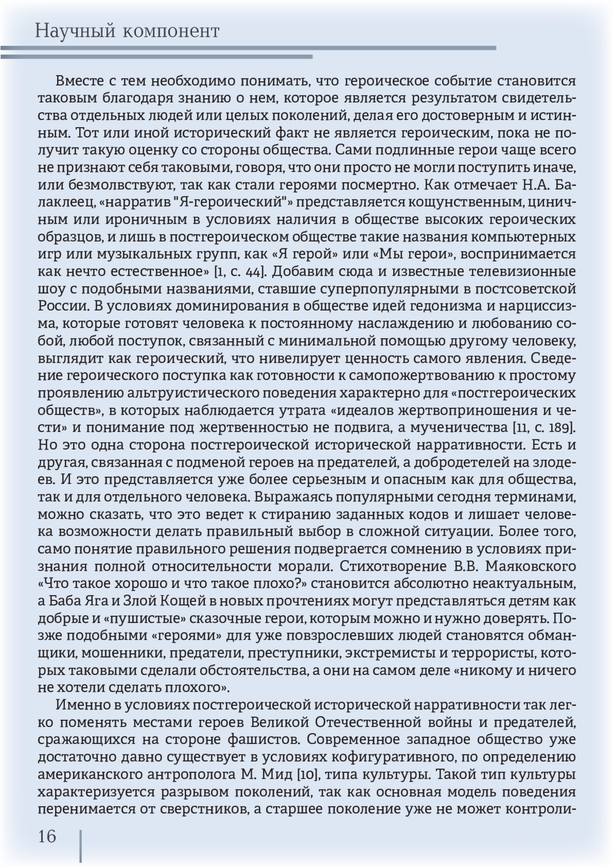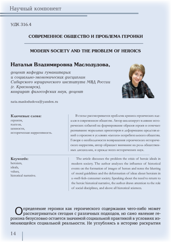 МАСЛОДУДОВА Н. В. СОВРЕМЕННОЕ ОБЩЕСТВО И ПРОБЛЕМА ГЕРОИКИ // НАУЧНЫЙ КОМПОНЕНТ. 2025. № 1 (25)