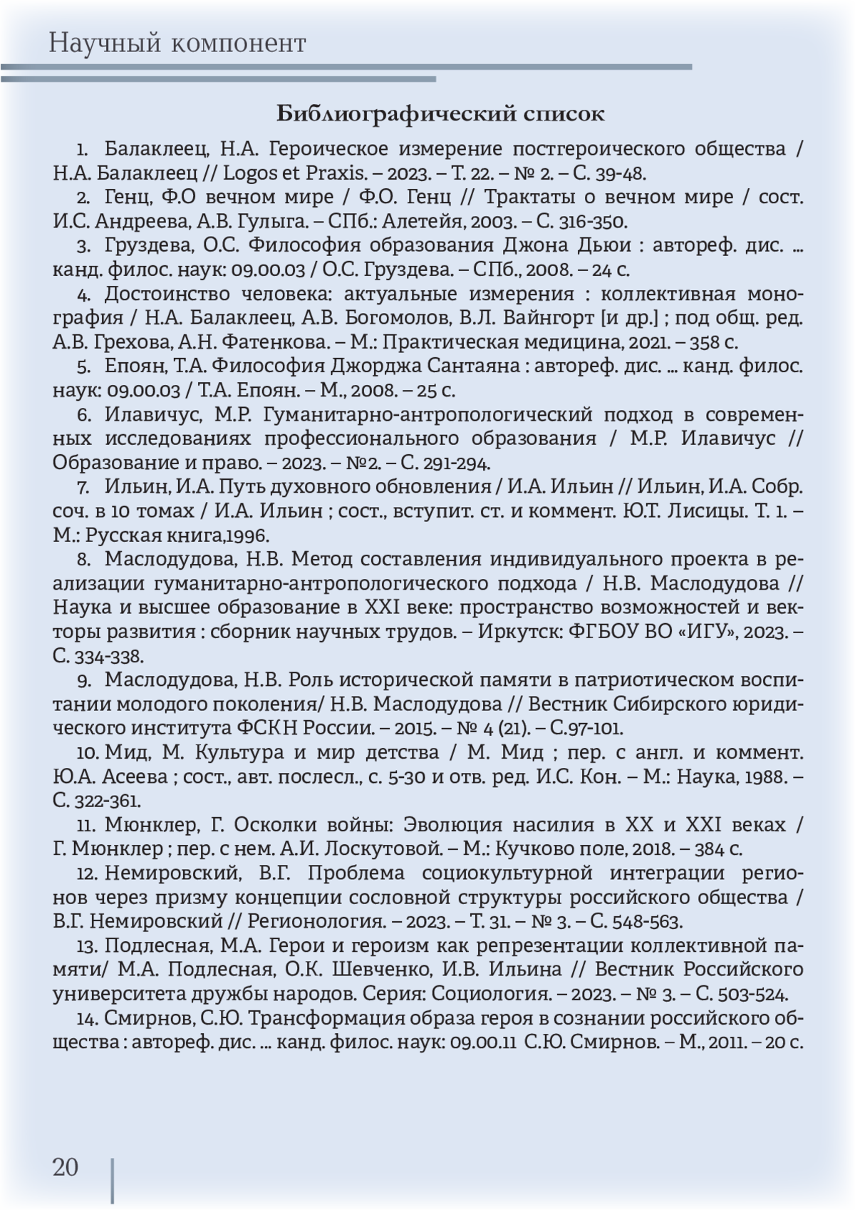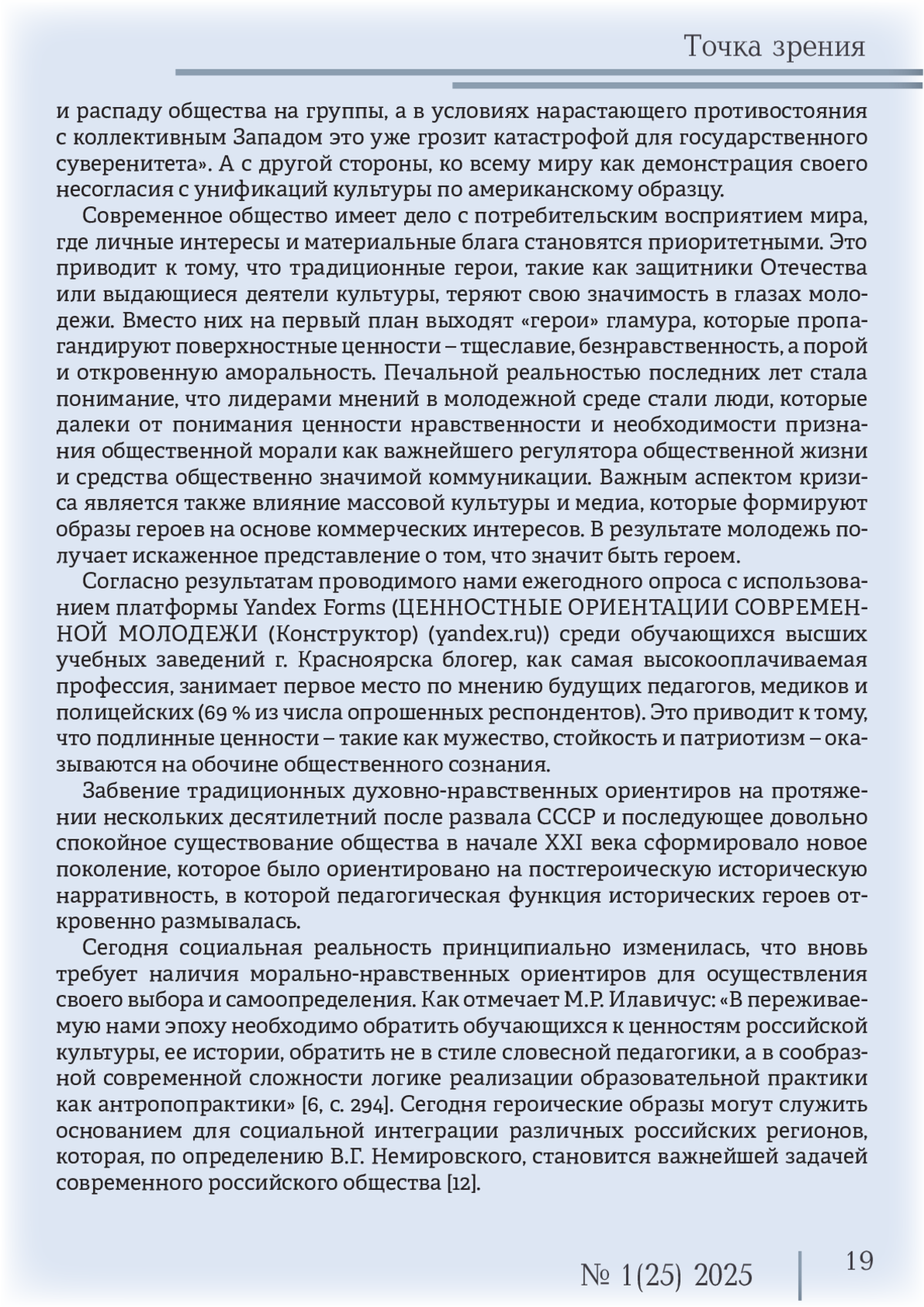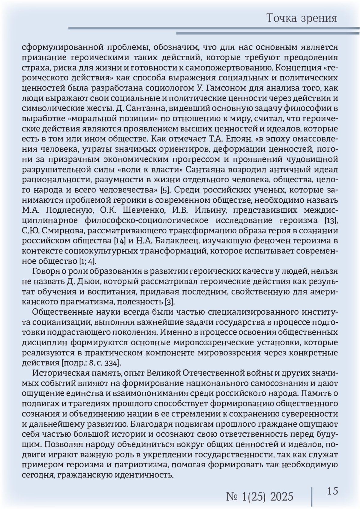 МАСЛОДУДОВА Н. В. СОВРЕМЕННОЕ ОБЩЕСТВО И ПРОБЛЕМА ГЕРОИКИ // НАУЧНЫЙ КОМПОНЕНТ. 2025. № 1 (25)