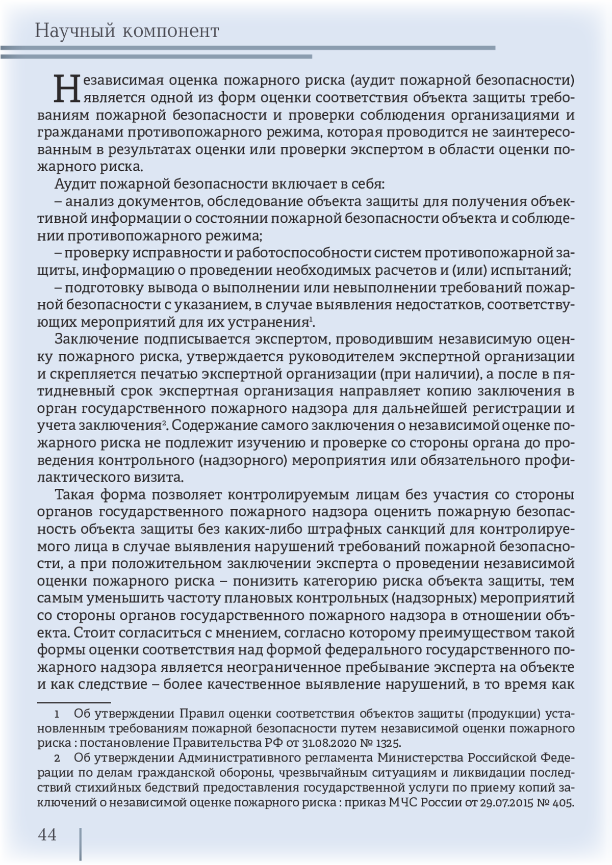 Ключевые фразы: независимая оценка пожарного риска, аудит пожарной безопасности, АДМИНИСТРАТИВНАЯ ОТВЕТСТВЕННОСТЬ, оценка соответствия объекта защиты требованиям пожарной безопасности, контрольная (надзорная) деятельность, государственный пожарный надзор, эксперт, нарушение требований пожарной безопасности