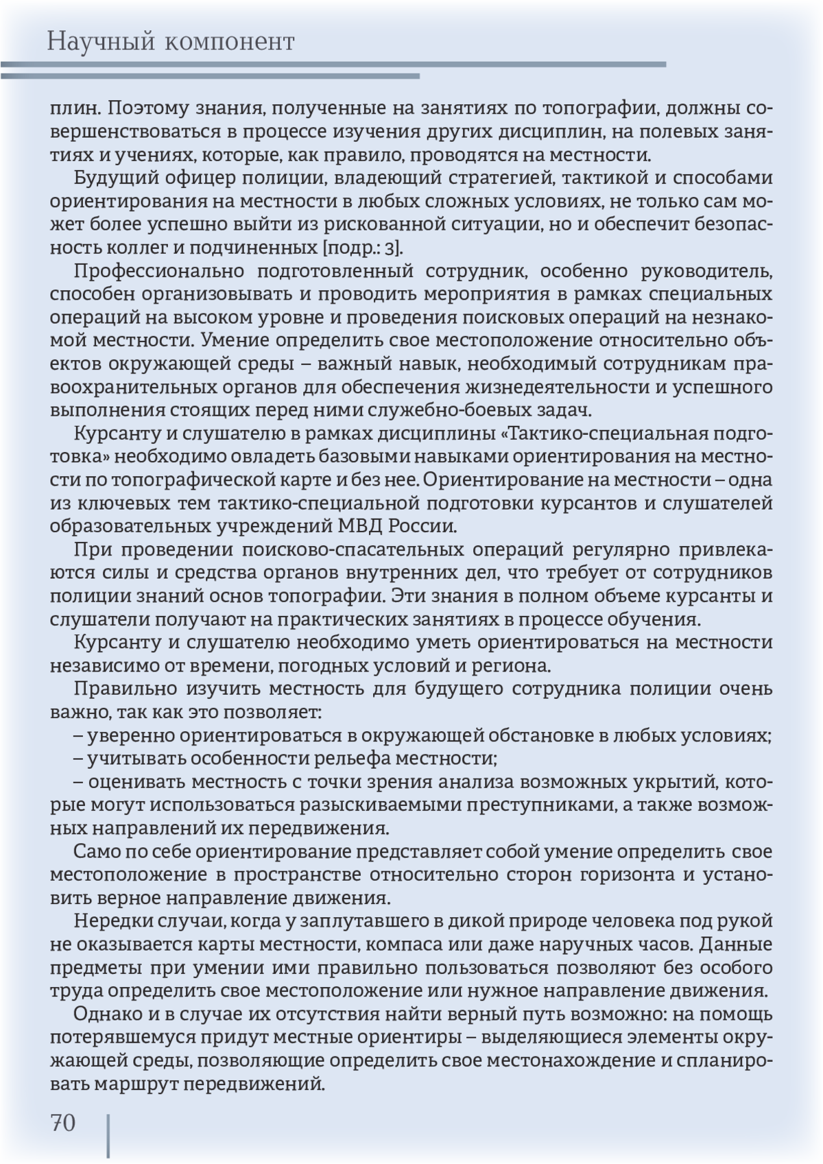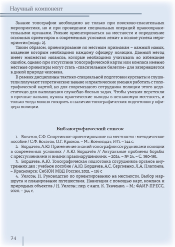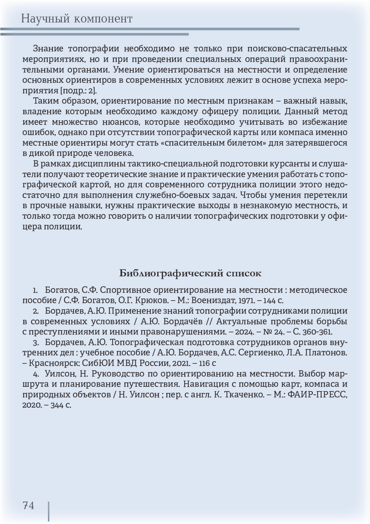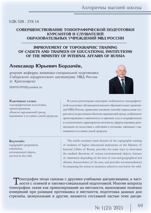 БОРДАЧЕВ А. Ю. СОВЕРШЕНСТВОВАНИЕ ТОПОГРАФИЧЕСКОЙ ПОДГОТОВКИ КУРСАНТОВ И СЛУШАТЕЛЕЙ ОБРАЗОВАТЕЛЬНЫХ УЧРЕЖДЕНИЙ МВД РОССИИ // НАУЧНЫЙ КОМПОНЕНТ. 2025. № 1 (25)