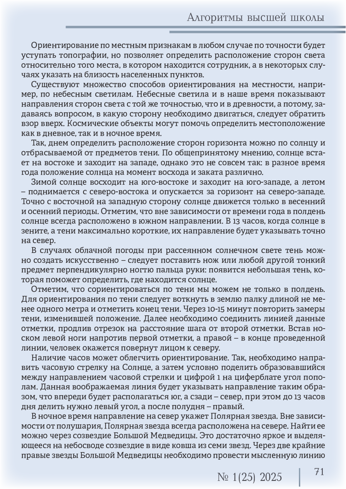 Статья: СОВЕРШЕНСТВОВАНИЕ ТОПОГРАФИЧЕСКОЙ ПОДГОТОВКИ КУРСАНТОВ И СЛУШАТЕЛЕЙ ОБРАЗОВАТЕЛЬНЫХ УЧРЕЖДЕНИЙ МВД РОССИИ (2025)