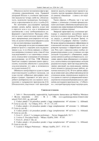 1. Salvi G. Discrezionalita, responsabilita, legittimazione democratica del Pubblico Ministero // Rivista trimestrale. - 2021. - № 2. - URL: www.questionegiustizia.it/data/rivista/articoli/934/2-2021_qg_salvi.pdf.