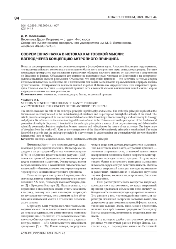 1. Бармина О. В. Антропный принцип как возможность новой онтологии // Вестник ВятГУ. 2009. № 1. С. 48-54.