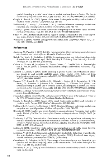 21. Holdsworth, C., Laverty, L., Robinson, J. (2017). Gender differences in teenage alcohol consumption and spatial practices. Children’s Geographies, 15(6), 741-753.