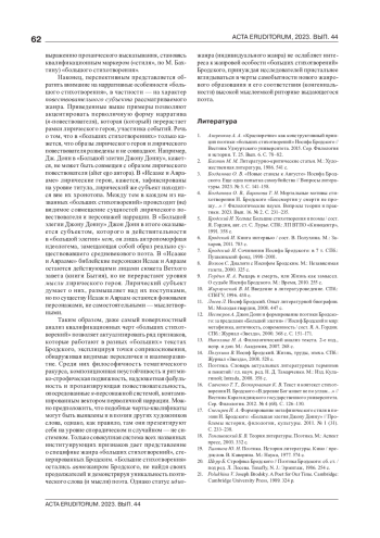 1. Азаренков А. А. “Красноречие” как конструктивный принцип поэтики “больших стихотворений” Иосифа Бродского // Вестник Удмуртского университета. 2015. Сер. Филология и история. Т. 25. Вып. 6. С. 78-82.