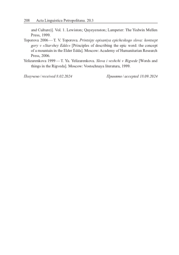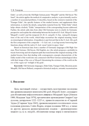 - Топорова 1998 — Т. В. Топорова. Об оппозиции ‘темный мир’ — ‘светлый мир’ в древнегерманской космогонии // Вопросы языкознания. 1998. № 6. С. 39–47.
