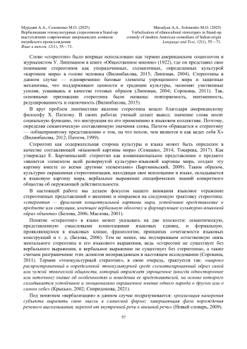 3. Вилинбахова, Е.Л. (2012). Стереотип в лингвистике: объект или инструмент исследования? В: Сборник научных статей по материалам конференции-школы “Проблемы языка: взгляд молодых ученых” (с. 19-28). М.: Институт языкознания РАН. EDN: UCUTJJ