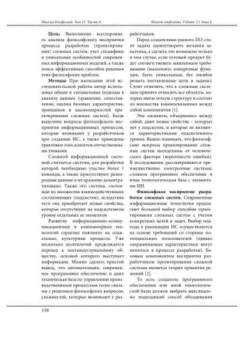 Выполнение всестороннего анализа философского восприятия процесса разработки (проектирования) сложных систем, учет специфики и уникальных особенностей современных информационных моделей, а также поиск эффективных способов решения этих философских проблем.