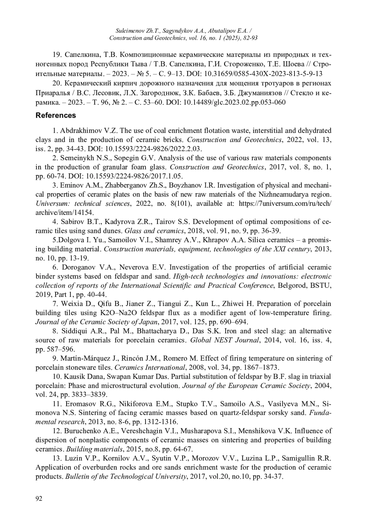 1. Тихонюк, И.А. Обзор аналитических и эмпирических методов расчета осадок поверхности грунта при щитовой проходке / И.А. Тихонюк // Construction and Geotechnics. – 2024. – Т. 15, № 4. – С. 78–101. DOI: 10.15593/2224-9826/2024.4.07