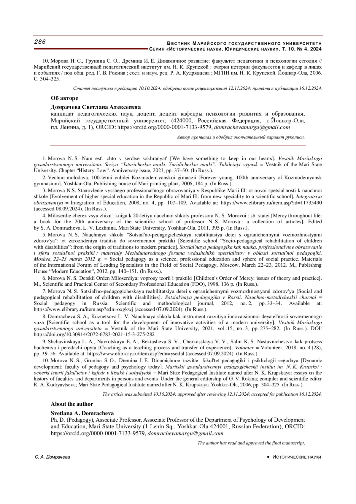 ДОМРАЧЕВА С. А. ИСТОРИЧЕСКИЙ ЭКСКУРС В СТРАНУ ДЕТСТВА, ВОЛОНТЕРСТВА И НАСТАВНИЧЕСТВА // ВЕСТНИК МАРИЙСКОГО ГОСУДАРСТВЕННОГО УНИВЕРСИТЕТА. СЕРИЯ: ИСТОРИЧЕСКИЕ НАУКИ. ЮРИДИЧЕСКИЕ НАУКИ. 2024. Т. 10 № 4 (40)
