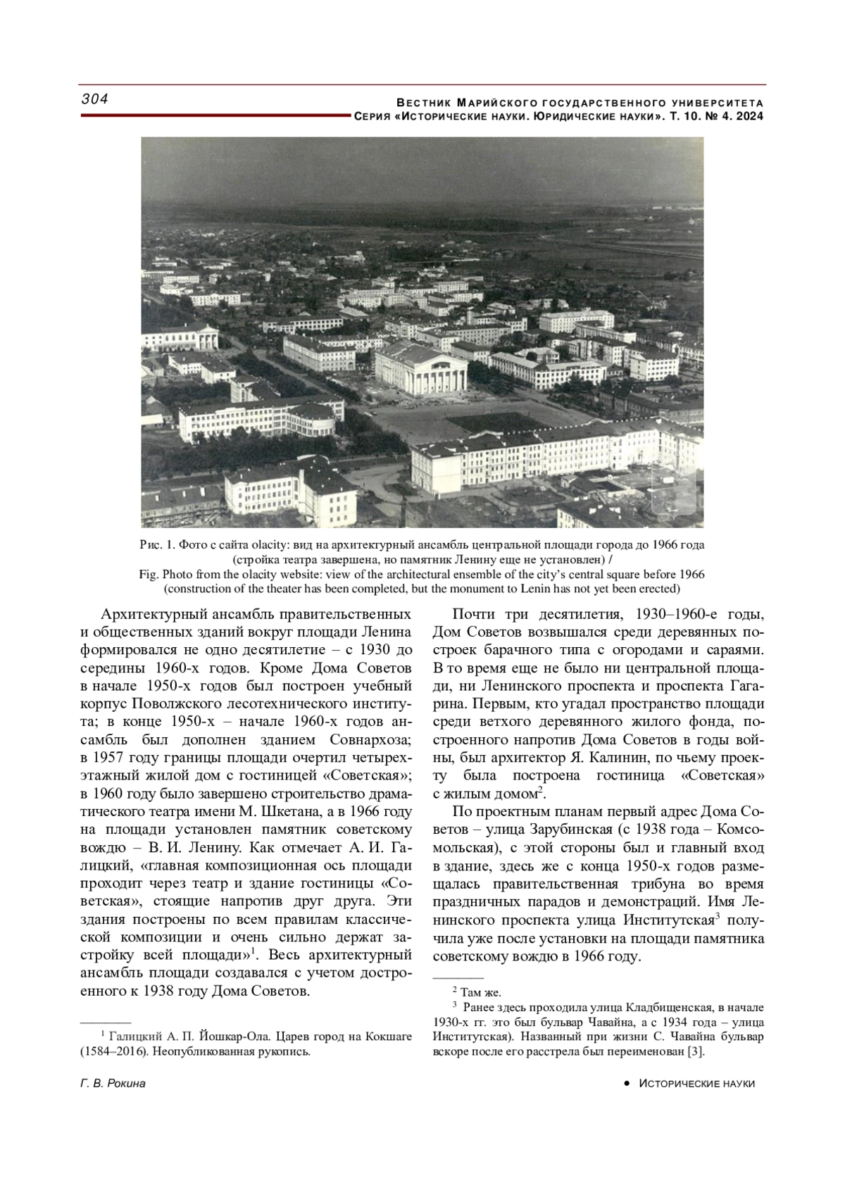 8. Граница Ю. В., Максимова Е. В., Желонкина Т. Ю. Историко-культурный анализ ул. Советской в Йошкар-Оле // Энигма. 2021. № 33. С. 158-165. URL: item.asp?id=46617742 (дата обращения: 21.09.2024). EDN: HRNXWI