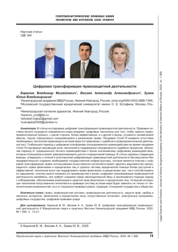 22. Жандарова И. Проект на будущее. Как избежать серьезных ошибок и рисков при внедрении цифровых решений // Российская газета. 2025. Legal Science and Practice: Journal of Nizhny Novgorod Academy of the Ministry of Internal Affairs of Russia, 2025, no. 1 (69) Legal Science and Practice: Journal of Nizhny Novgorod Academy of the Ministry of Internal Affairs of Russia, 2025, no. 1 (69).