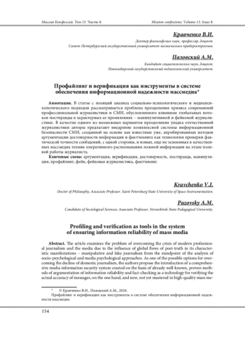 В статье с позиций анализа социально-психологического и медиапсихологического подходов рассматривается проблема преодоления кризиса современной профессиональной журналистики и СМИ, обусловленного влиянием глобальных потоков постправды в характерных ее проявлениях - манипулятивной и фейковой журналистики. В качестве одного из возможных вариантов преодоления упадка отечественной журналистики авторы предлагают внедрение комплексной системы информационной безопасности СМИ, созданной на основе как известных уже, апробированных методов аргументации достоверности информации и фактчекинга как технологии проверки фактической точности сообщений, с одной стороны, и новых, еще не освоенных в качественных массмедиа техник оперативного распознавания ложной информации на этапе полевой работы журналиста.