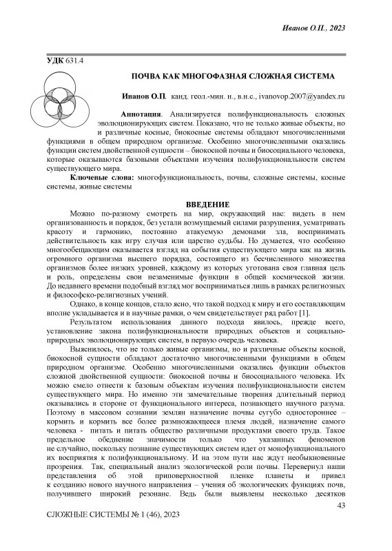 функциями в общем природном организме. Особенно многочисленными оказались функции систем двойственной сущности – биокосной почвы и биосоциального человека, которые оказываются базовыми объектами изучения полифункциональности систем существующего мира.