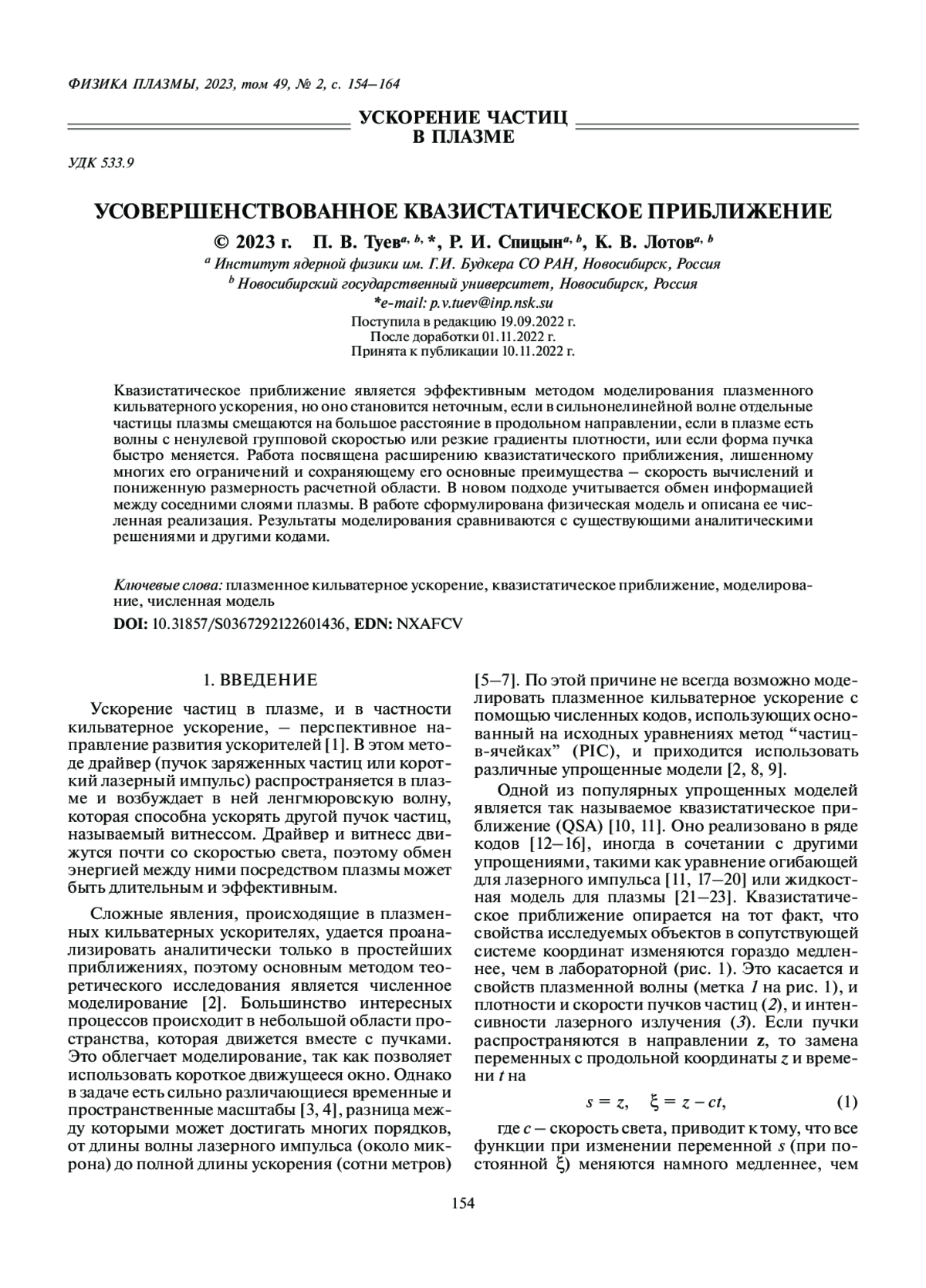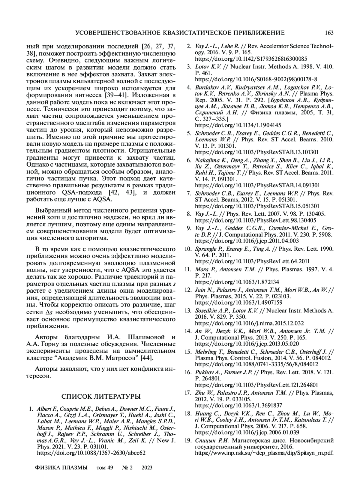 25. Khudiakov V.K., Lotov K.V., Downer M.C. // Plasma Phys. Control. Fusion. 2022. V. 64. P. 045003. DOI: 10.1088/1361-6587/ac4523 EDN: DRFIQT