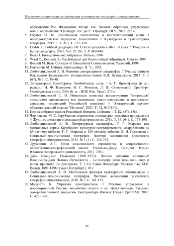 4. Географические исследования ментальности: теория, методология, методы, практика: монография / А. В. Любичанковский; М-во науки и высш. образования Рос. Федерации, Федер. гос. бюджет. образоват. учреждение высш. образования “Оренбург. гос. ун-т”. Оренбург: ОГУ, 2023. 223 с. EDN: CAQQOQ