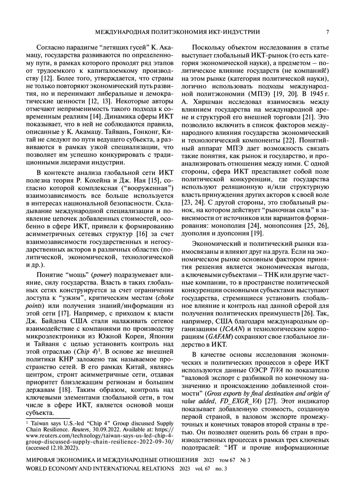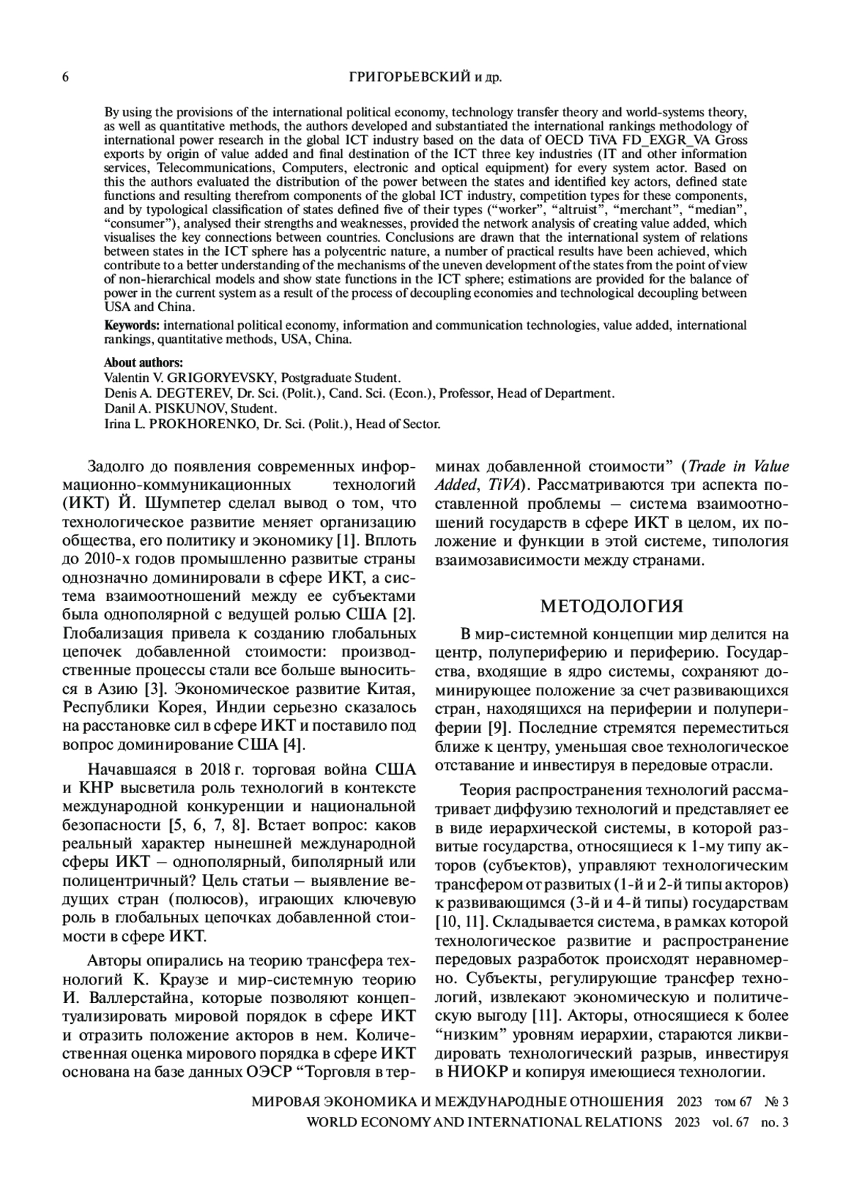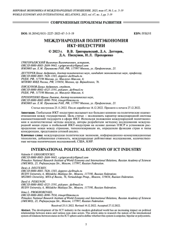 ГРИГОРЬЕВСКИЙ В. В., ДЕГТЕРЕВ Д. А., ПИСКУНОВ Д. А., ПРОХОРЕНКО И. Л. МЕЖДУНАРОДНАЯ ПОЛИТЭКОНОМИЯ ИКТ-ИНДУСТРИИ // МИРОВАЯ ЭКОНОМИКА И МЕЖДУНАРОДНЫЕ ОТНОШЕНИЯ. 2023. Т. 67 № 3