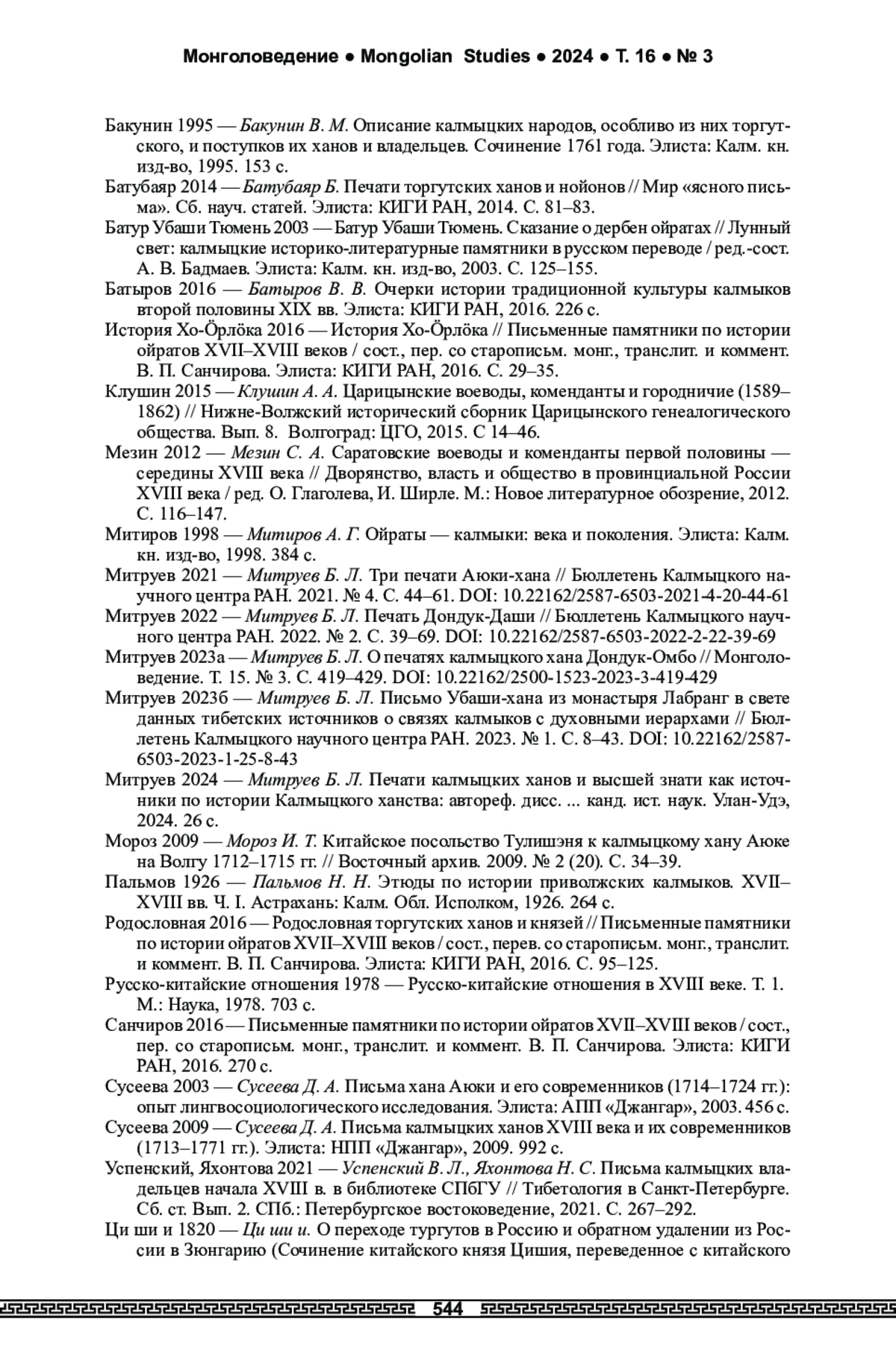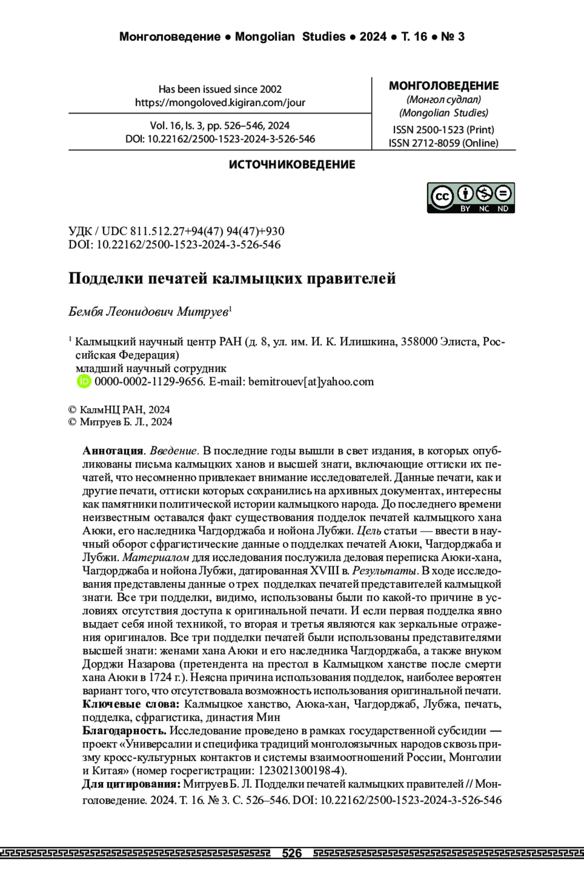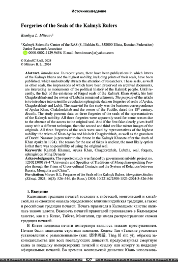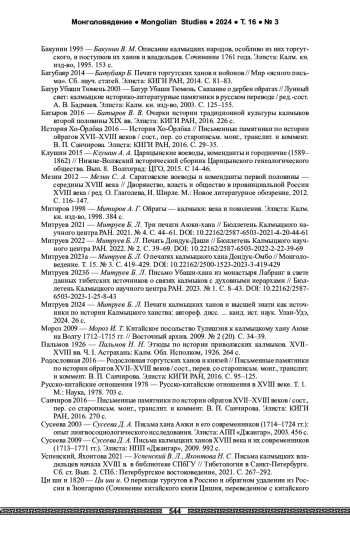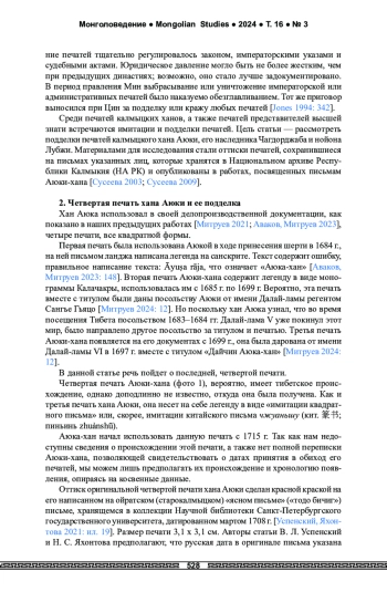 15. Митруев 2024 - Митруев Б. Л. Печати калмыцких ханов и высшей знати как источники по истории Калмыцкого ханства: автореф. дисс. ... канд. ист. наук. Улан-Удэ, 2024. 26 с.