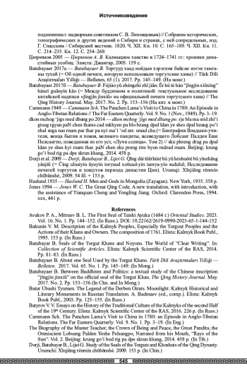 3. Бакунин 1995 - Бакунин В. М. Описание калмыцких народов, особливо из них торгутского, и поступков их ханов и владельцев. Сочинение 1761 года. Элиста: Калм. кн. изд-во, 1995. 153 с.