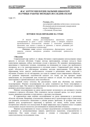 В данной статье рассматривается применение игрового моделирования на уроке с целью создания среды, в которой учащимся предоставляется возможность активно и личностно развиваться, применять свои знания и навыки на практике, а также развивать ряд социальных и когнитивных компетенций