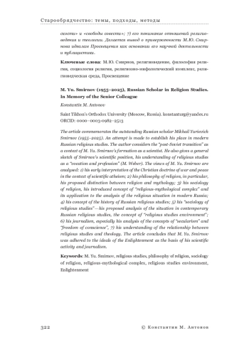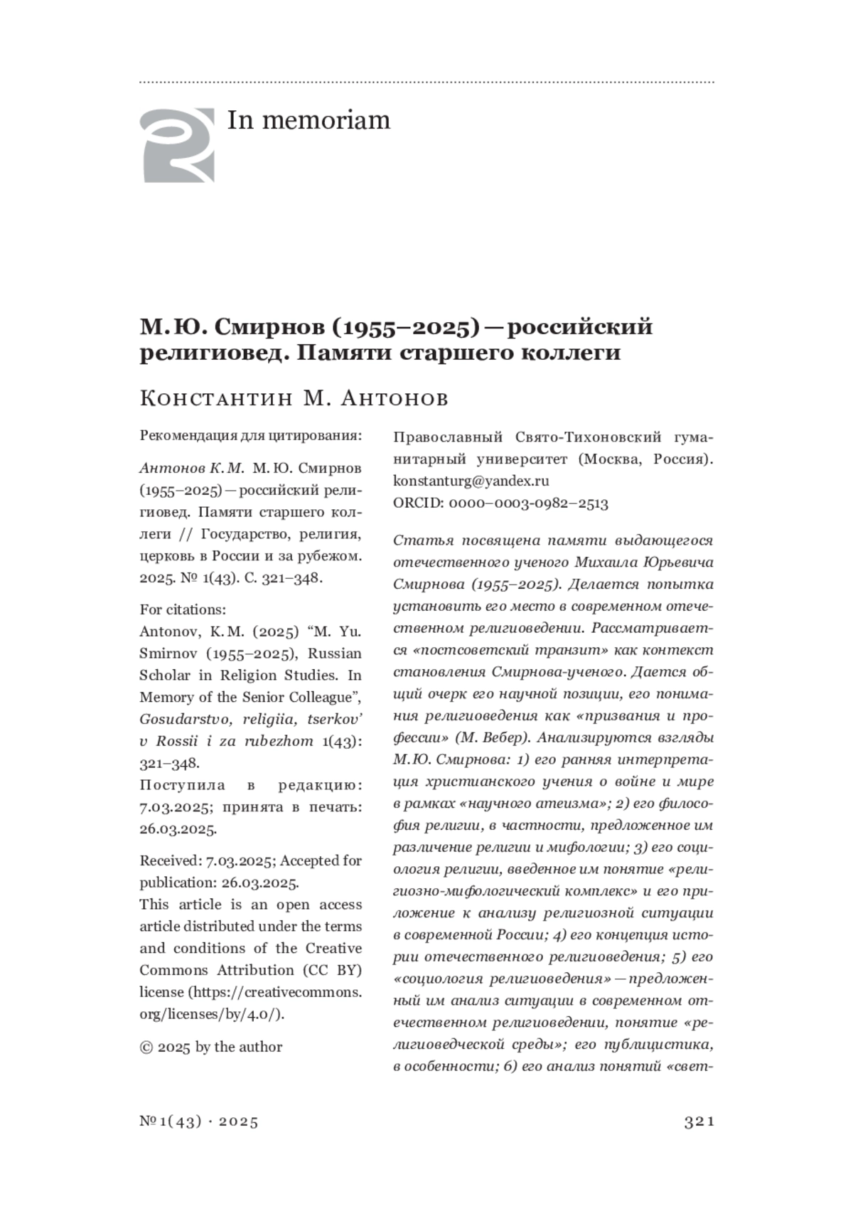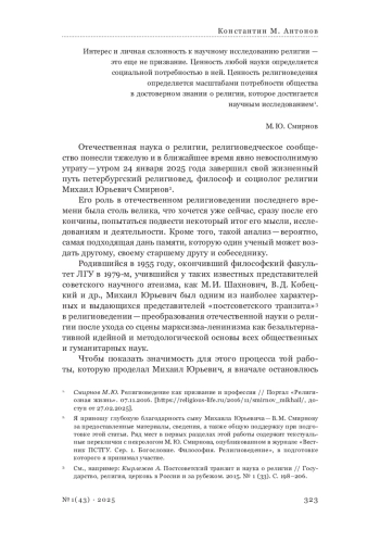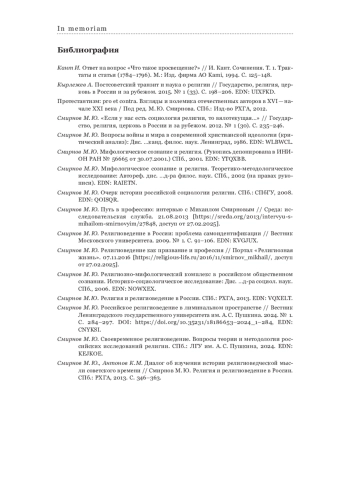15. Смирнов М. Ю. Своевременное религиоведение. Вопросы теории и методологии российских исследований религии. СПб.: ЛГУ им. А. С. Пушкина, 2024. EDN: KEJKOE.