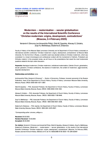Исторический факультет Московского государственного университета им. М. В. Ломоносова (МГУ) и кафедра истории Церкви провели в международную научную конференцию «Христианский модернизм: истоки, развитие, противоречия». Впервые в России научное мероприятие было целиком посвящено христианскому модернизму, который рассматривался в широком хронологическом и конфессиональном контексте с привлечением католического, протестантского и православного материала. В предлагаемом обзоре мы остановимся на докладах, поднявших наиболее принципиальные вопросы, связанные с предложенной для обсуждения темой.
